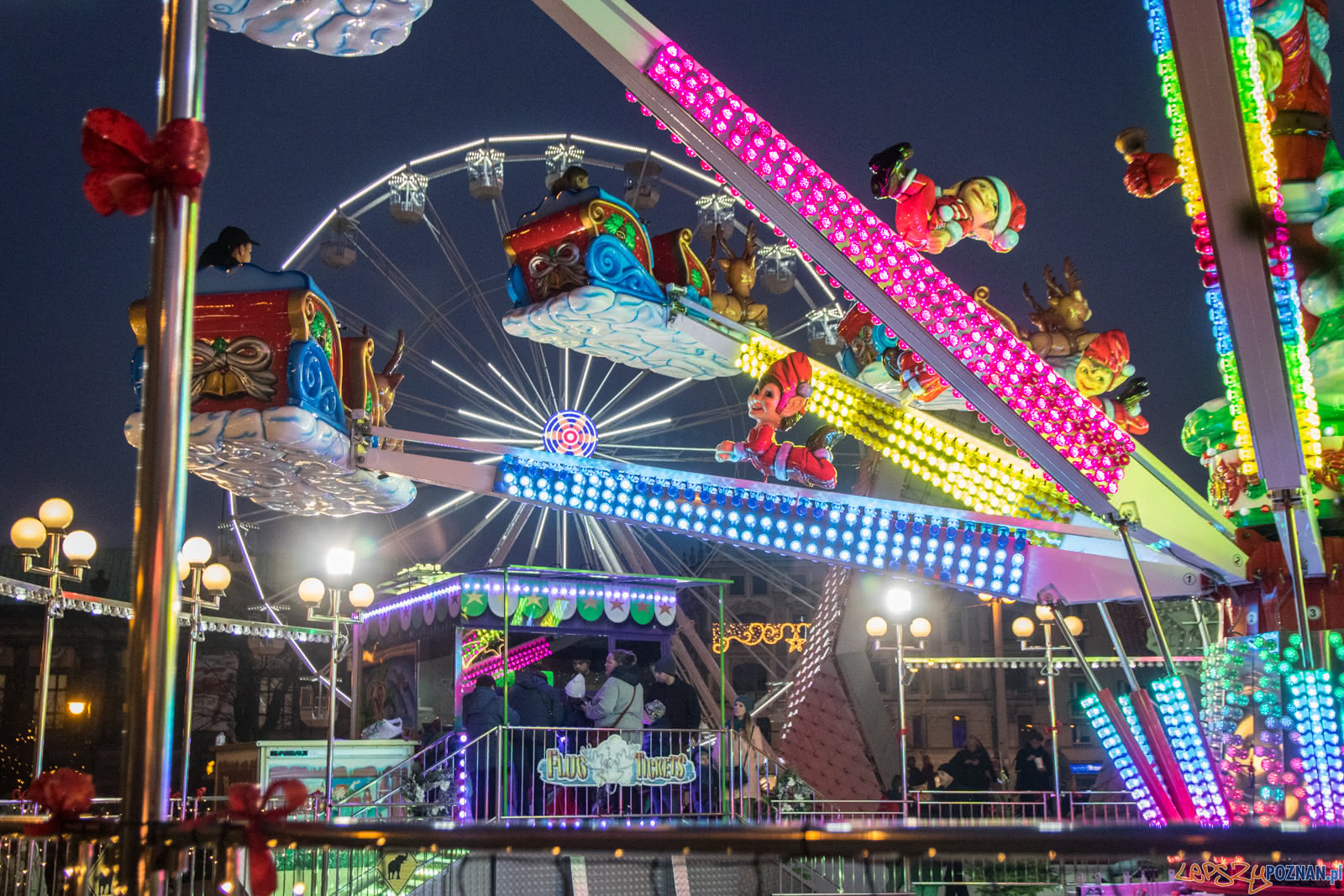 Tak jak w latach ubiegłych na poznaniaków czeka diabelski młyn, z którego można podziwiać panoramę Poznania. Młyn został w tym roku zmodernizowany, jest półzamknięty, ma też gondolę przystosowaną do potrzeb osób z niepełnosprawnościami. Dla młodszych przygotowano karuzelę, w której wsiąść można do sań Świętego Mikołaja, a dla maluchów – zabytkową karuzelę.