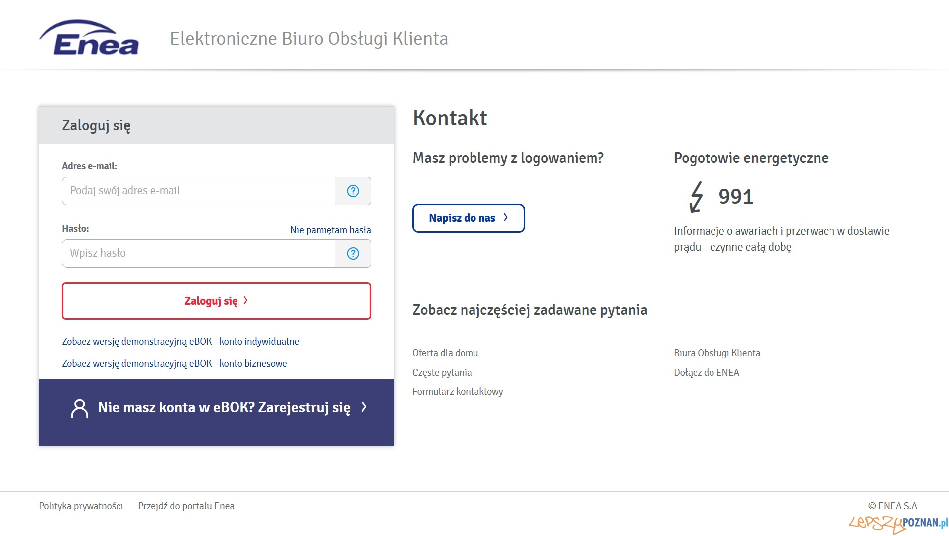 Do nowego eBOKa Enei można rejestrować się i logować na stronie www.ebok.enea.pl.