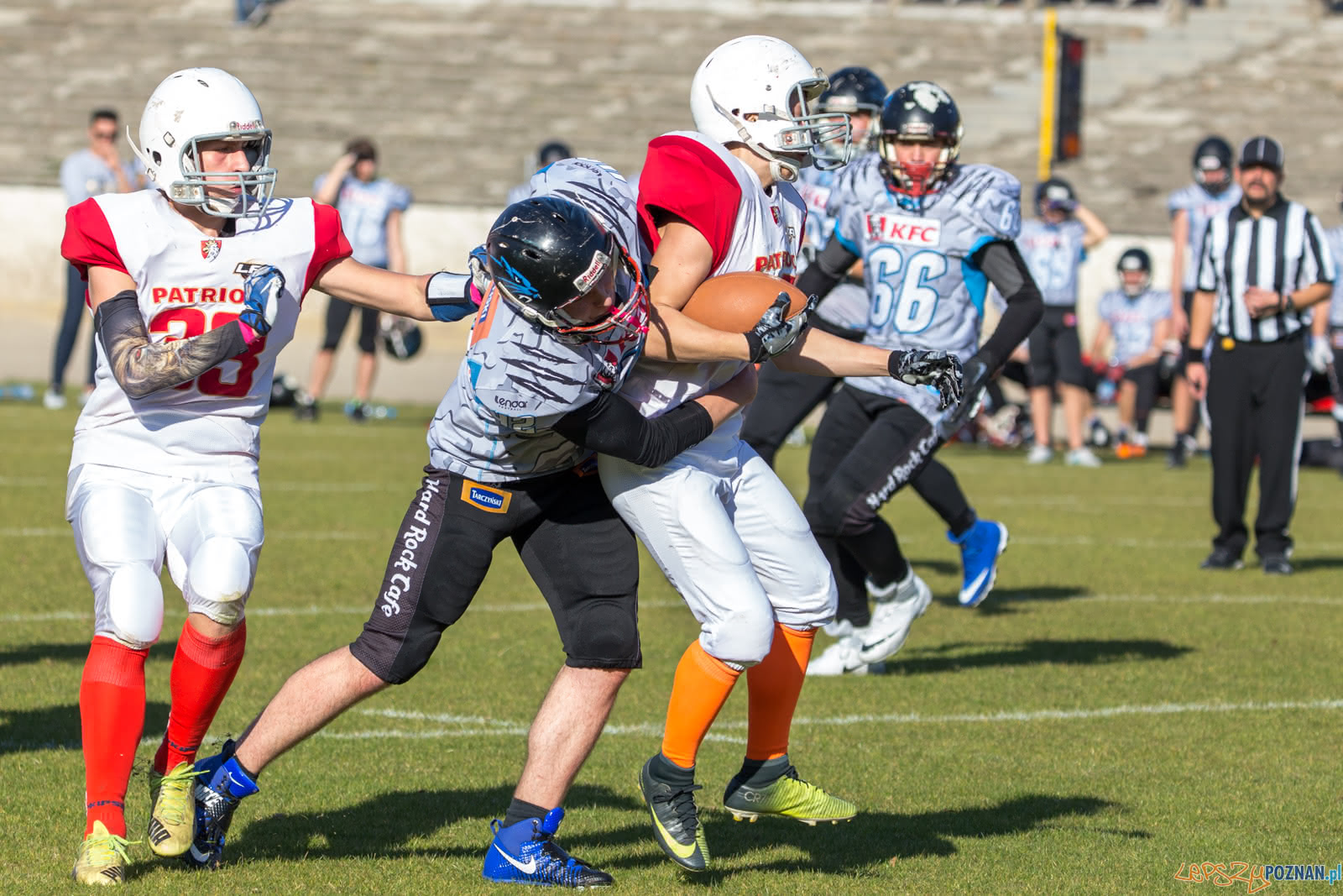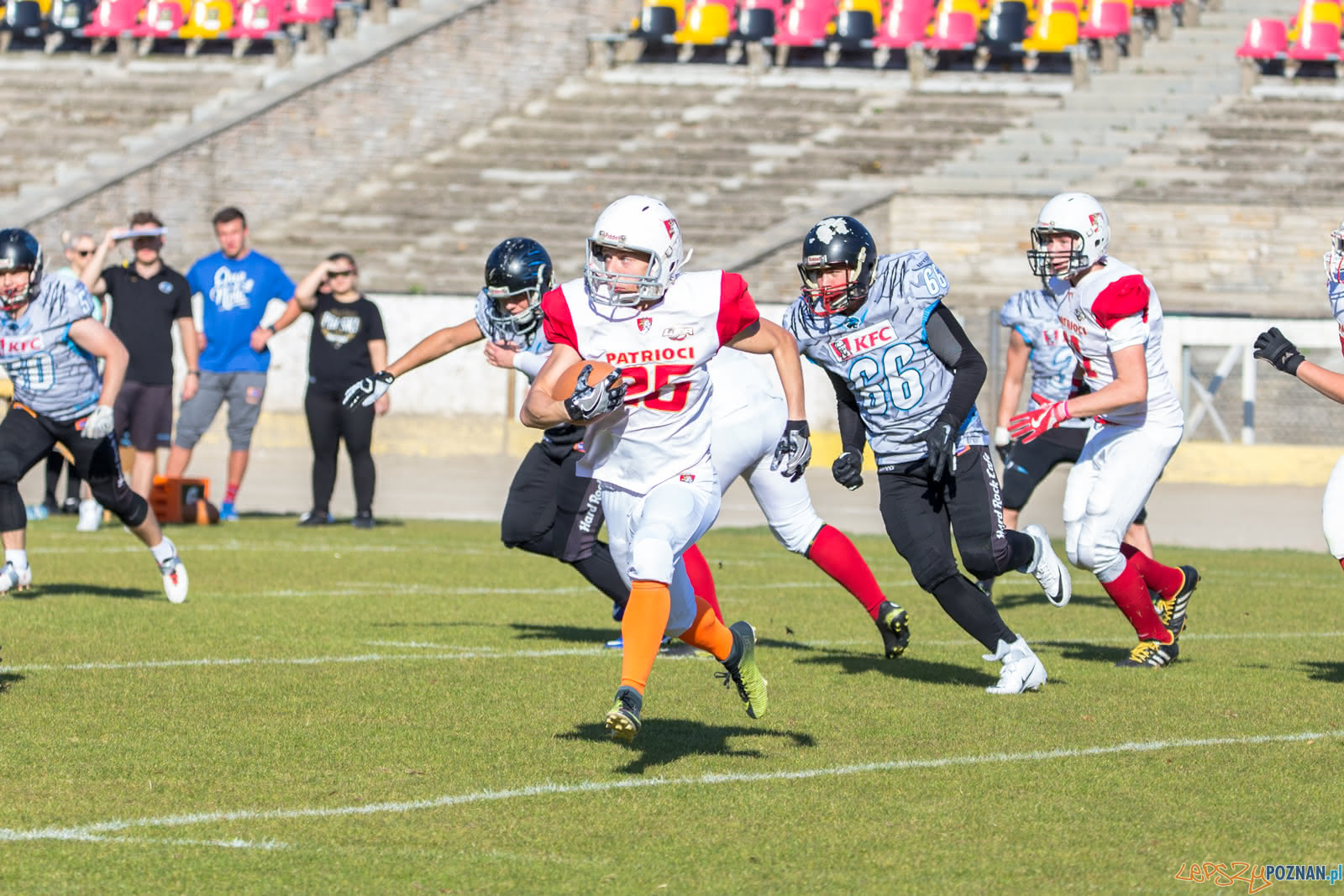 W sobotę na poznańskim Golęcinie rozegrane zostało spotkanie Juniorskiej Ligi Futbolu Amerykańskiego pomiędzy drużynami Patrioci Poznań, Panthers Wrocław. Poznaniacy niestety nie zdobyli ani jednego przyłożenia i wysoko ulegli rywalom.