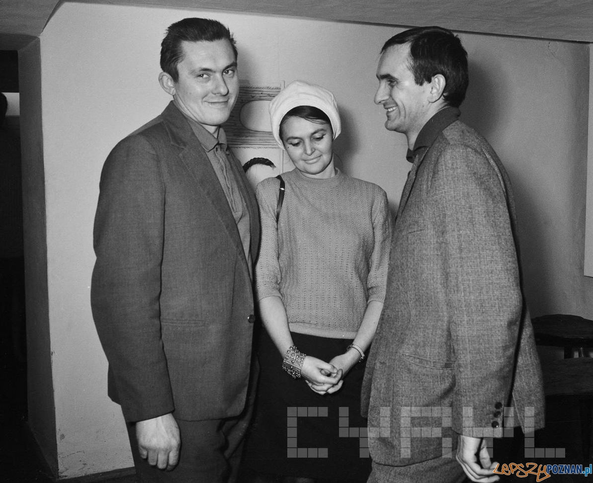 Zdjęcie: Jan Berdyszak, Maria Berdyszakowa (historyk sztuki) i Jacek Juszczyk w Galerii odNOWA przy ul. Wielkie, 28.11.1967, fot. Jerzy Nowakowski / Cyryl