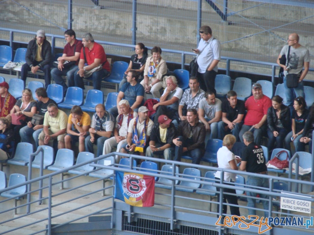 Meldujemy się ze stadionu! Trybuny powoli, jak żółw ociężale, ale się zapełniają. Ma się dzisiaj przy Bułgarskiej stawić ponad 13.000 kiboli, by swym dopingiem dodać skrzydeł piłkarzom, którym ostatnio jakby piórka opadły. Cały czas jednak w nich wierzymy, bo wiemy, że te nienajlepsze mecze miały po prostu uśpić czujność Spartan. Relację z meczu zaczniemy równo z pierwszym gwizdkiem. Póki co pierwsze fotki (które będziemy w miarę możliwości aktualizować, a fotogalerię z meczu zamieścimy nieco później). Na stadionie jest mała grupka kibiców Sparty – są oczywiście również holky! Ciekawe, czy będzie ich więcej..? Kibiców oczywiście.