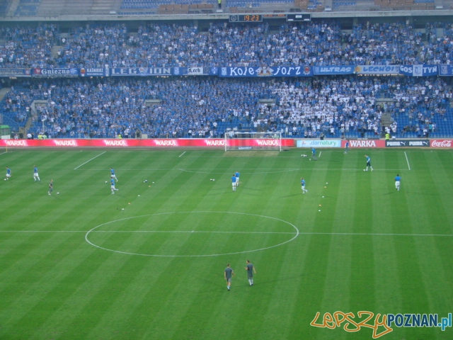 O 19:20 na murawę wszedł bramkarz Lecha przywitany przez kiboli gromkim KO-LE-JORZ! Kilka minut później pojawiła się cała drużyna, by rozpocząć rozgrzewkę.