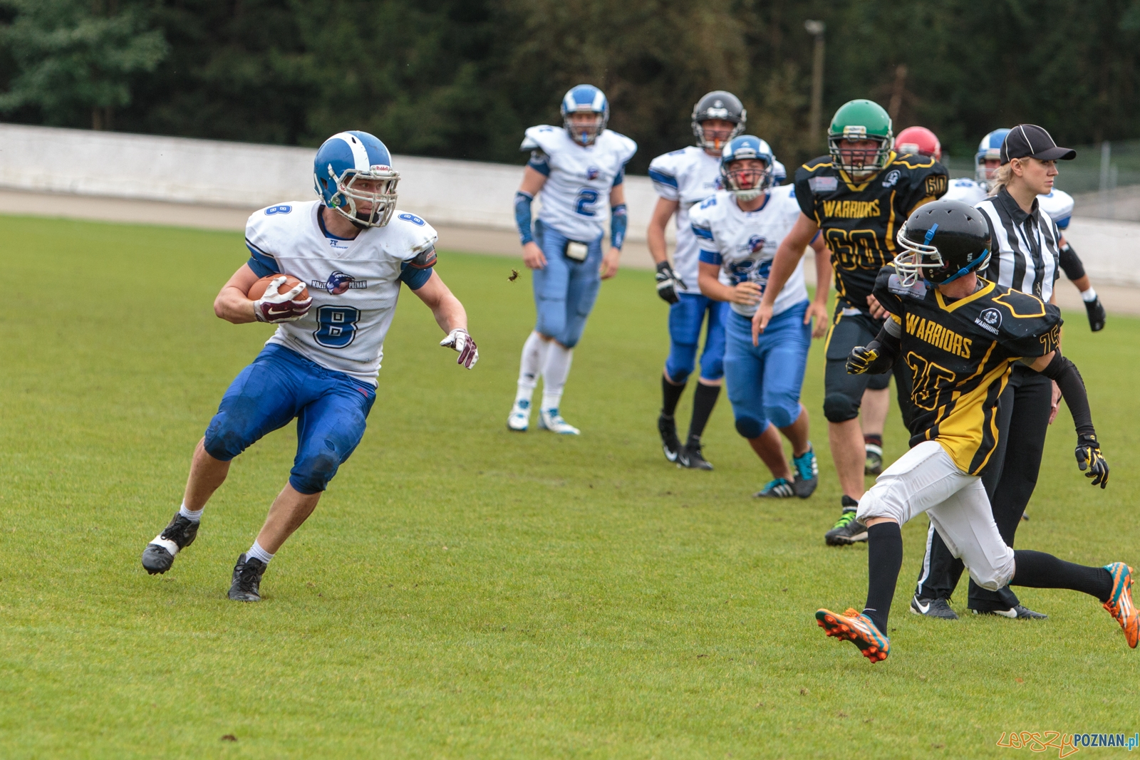 W rozegranych na Golęcinie ostatnich meczach III-ego turnieju grupy zachodniej PLFA 8 dwukrotnie zmierzyły się ze sobą drużyny Kozły Poznań B oraz Warrior Lubin. Pierwsze spotkanie wygrali 18:12, a drugi 18:0. Tym samym poznaniacy zakończyli fazę grupową na pierwszym miejscu.