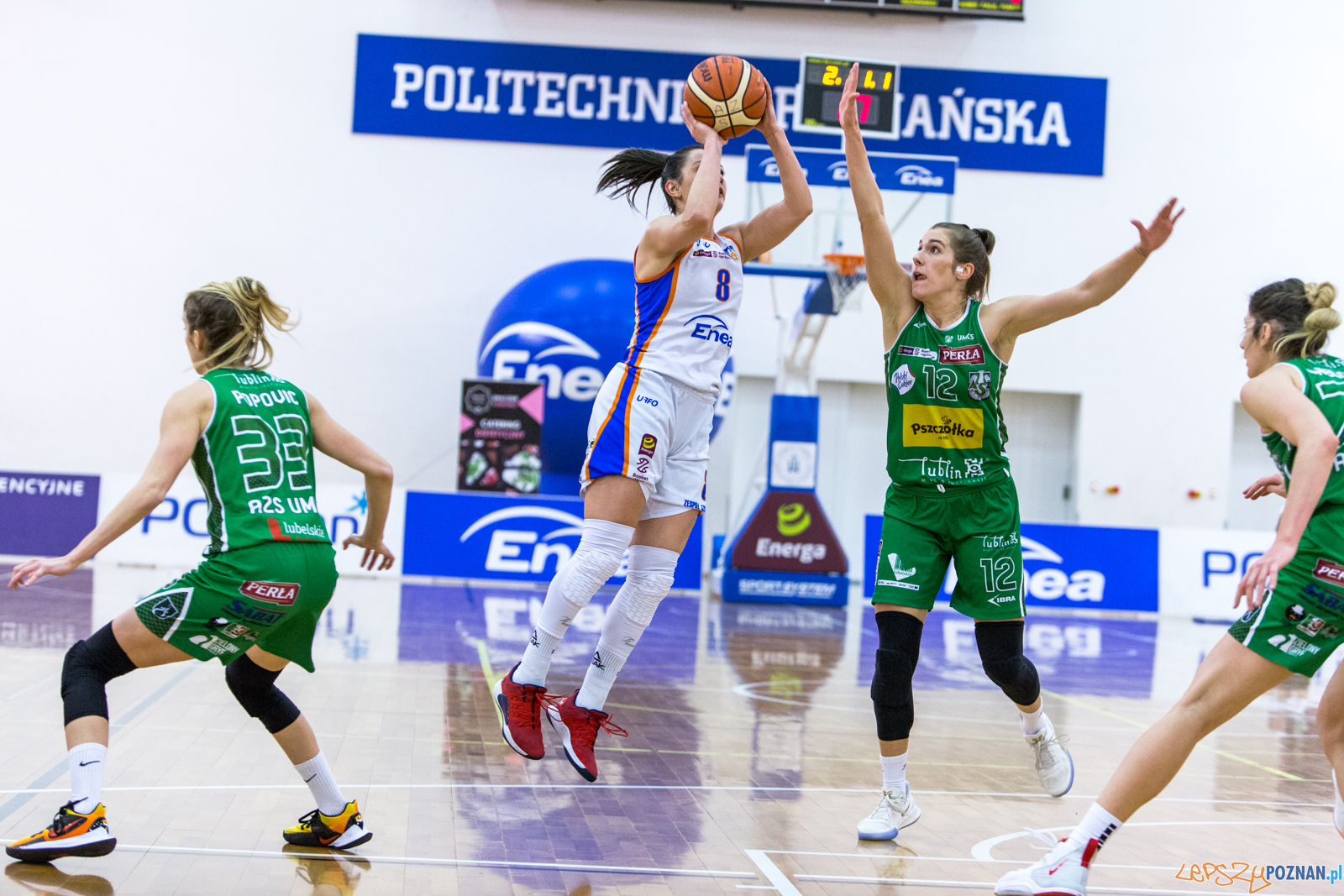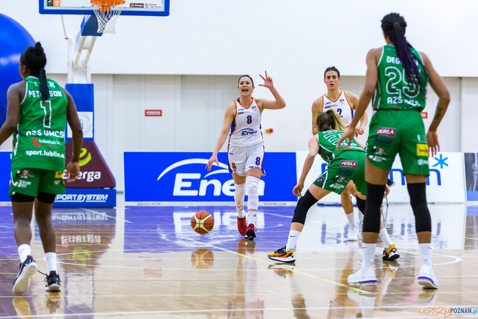 Na początku czwartej kwarty to Poznanianki zdobyły 4 punkty z rzędu, kiedy faulowana Mfutila trafiła osobistego i „trójkę” dołożyła Miletić. Enea AZS wygrywała wówczas 68:63. Jednak wówczas lublinianki za sprawą najskuteczniejszej w swoich szeregach Alexis Peterson zaczęły odrabiać straty, wychodząc na niewielkie prowadzenie. Nie oddały go już do końca meczu, choć poznanianki miały jeszcze w końcówce szansę doprowadzić do dogrywki. Jednak nie zdołały oddać rzutu do kosza i straciły piłkę faulując Peterson. Ta wykorzystała 2 rzuty osobiste ustalając wynik spotkania 74:78. Rozgrywająca z Lublina zagrała na świetnej skuteczności z gry: 3/5 za 2punkty, 3/6 za3 i 12/14 za1 punkt. Miała przy tym 6 asyst i 5 zbiórek.