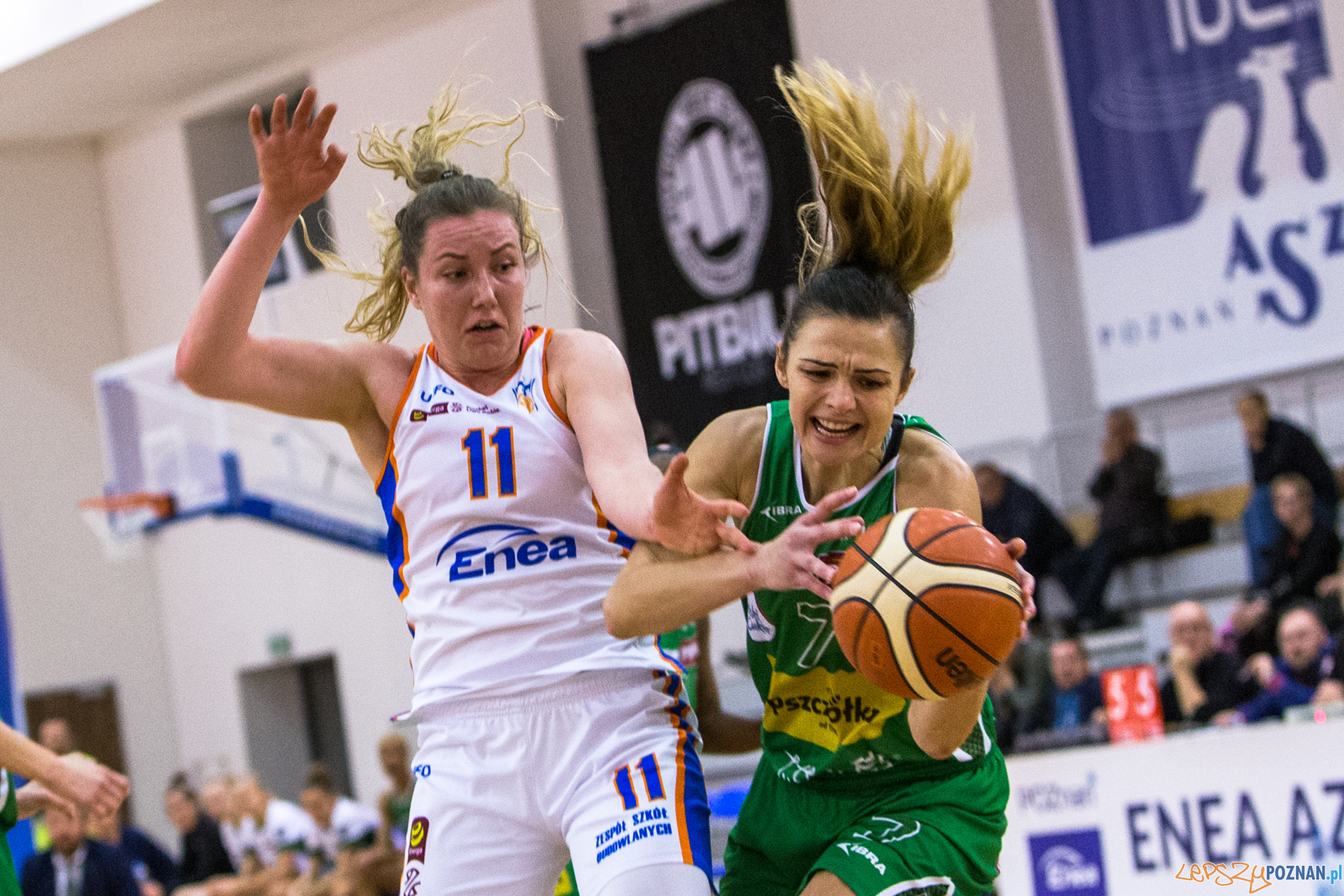 Druga część meczu to praktycznie punkt za punkt. Oba zespoły były bardzo zdeterminowane i grały bardzo agresywnie. Faworyzowane Pszczółki pierwszy raz wyszły na prowadzenie 24:22 w 13 minucie meczu, kiedy Day rzuciła 2 punkty spod kosza. Jednak szybka odpowiedź poznanianek, a dokładnie trzypunktowy rzut Lei Miletić wyprowadził Enea AZS na ponowne prowadzenie. Do końca pierwszej połowy żaden zespół nie mógł odskoczyć na wyższe prowadzenie, które przechodziło raz na jedną raz na drugą stronę. Ostatecznie to poznanianki schodziły do szatni z 4 punktową przewagą.