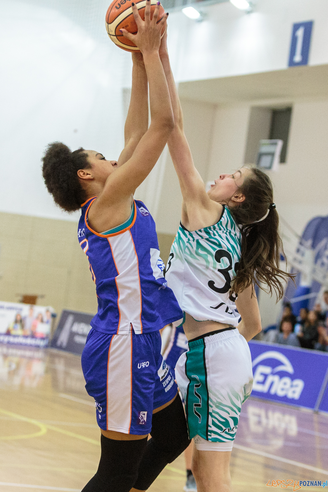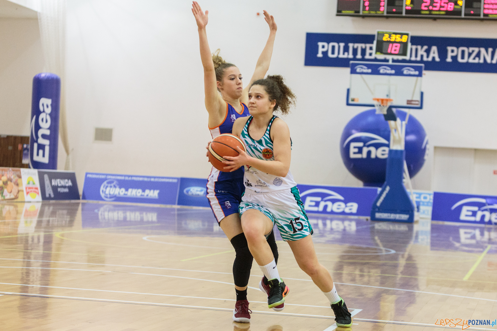 Spotkanie było wyjątkowo wyrównane, a wyniku zadecydował trzypunktowy rzut oddany z końcową syreną. Jeszcze 28 sekund przed końcem spotkania był remis 54:54. Poznanianki rozgrywały piłkę, jednak nie udało im się jednak przechylić szali zwycięstwa na swoją stronę. Kluczową akcją końcówki meczu była zbiórka w obronie Kamili Podgórnej. Akcja potoczyła się błyskawicznie, by na końcu Anna Makurat trafiła do koszta zza linii 6,75 przypieczętowując zwycięstwo swojej drużyny.