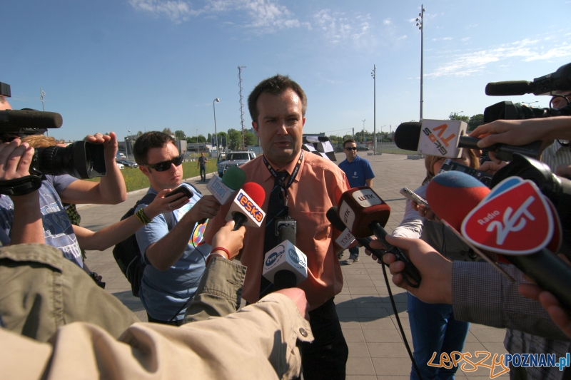 Tuż przed startem ten ostatni uczestnik tej niecodziennej rywalizacji przyznał, że choć zainwestował w “infrastrukturę”, czyli buty, czuje, że do poprzedniego wyścigu był lepiej przygotowany. Dobre humory dopisywały całej czwórce. Punktualnie o godzinie 8:00 wszyscy wystartowali w stronę stadionu. Pierwszy na prowadzenie wysunął się Michał Kowalonek jadący rowerem. Biegnący całą 12 kilometrową trasę Sławomir Bajew na ulicę Warszawską dotarł zaraz za nim. Trzeci był jadący samochodem Krzysztof Kotorowski. Zupełnie inną taktykę niż Ryszard Grobelny przyjął tym razem Tomasz Lański, który jechać będzie komunikacją miejską. W przeciwieństwie do prezydenta, który na przystanek tramwajowy szedł spokojnie, pan Tomasz biegł bardzo szybko, gubiąc zaskoczonych fotoreporterów.