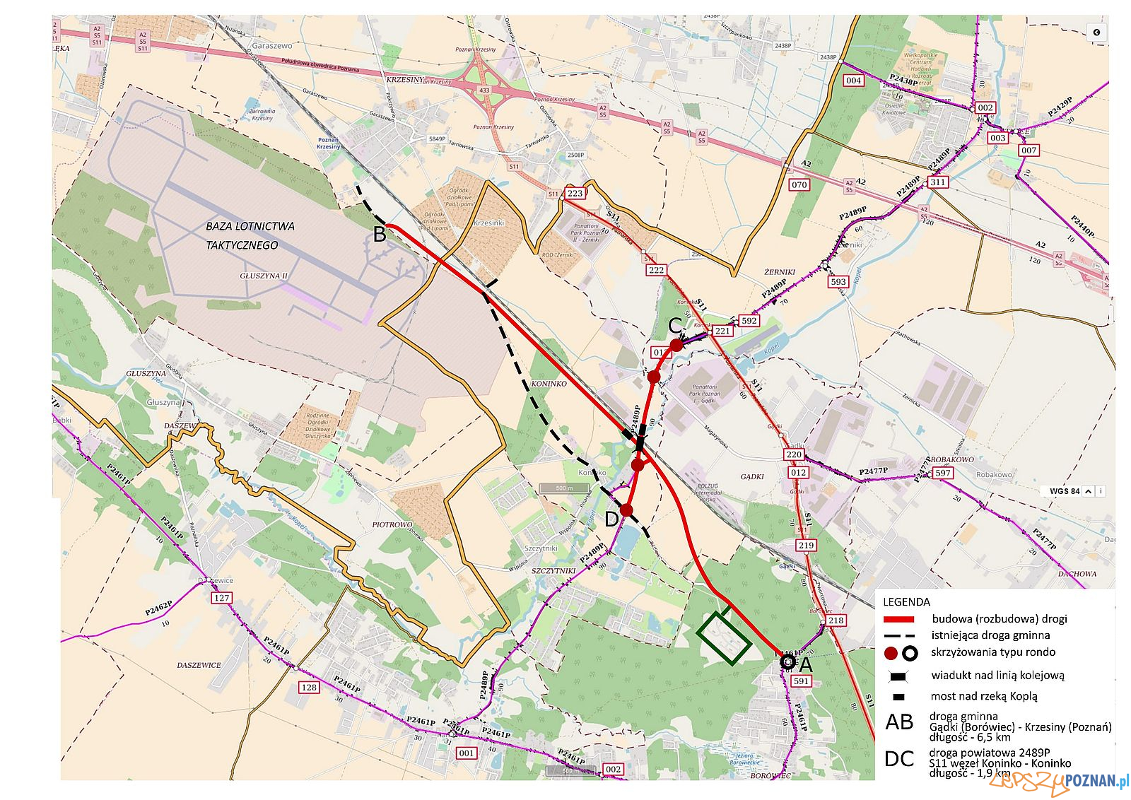 Dostosowanie dróg w okolicy obiektów wojskowych do wymogów technicznych i obronnych dla potrzeb Sił Zbrojnych – takie jest główne założenie inwestycji. Tym samym trasa ma przejąć ruch ciężkich, wojskowych pojazdów, odciążając tym samym drogi lokalne w okolicy baz wojskowych. 2-kilometrowy odcinek drogi powiatowej zostanie rozbudowany, a ponad 6-kilometrowa droga łącząca bazę z magazynem – częściowo przebudowana, a częściowo zbudowana od nowa. W piątek Jan Grabkowski starosta poznański podpisał w Warszawie umowę na realizację tego najdroższego w historii powiatu zadania drogowego.