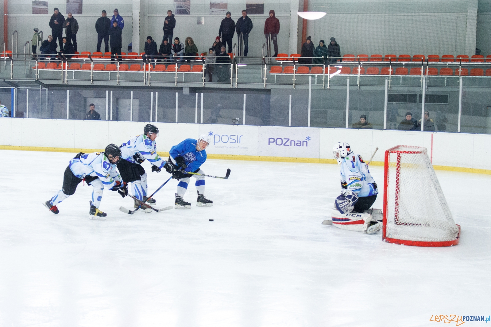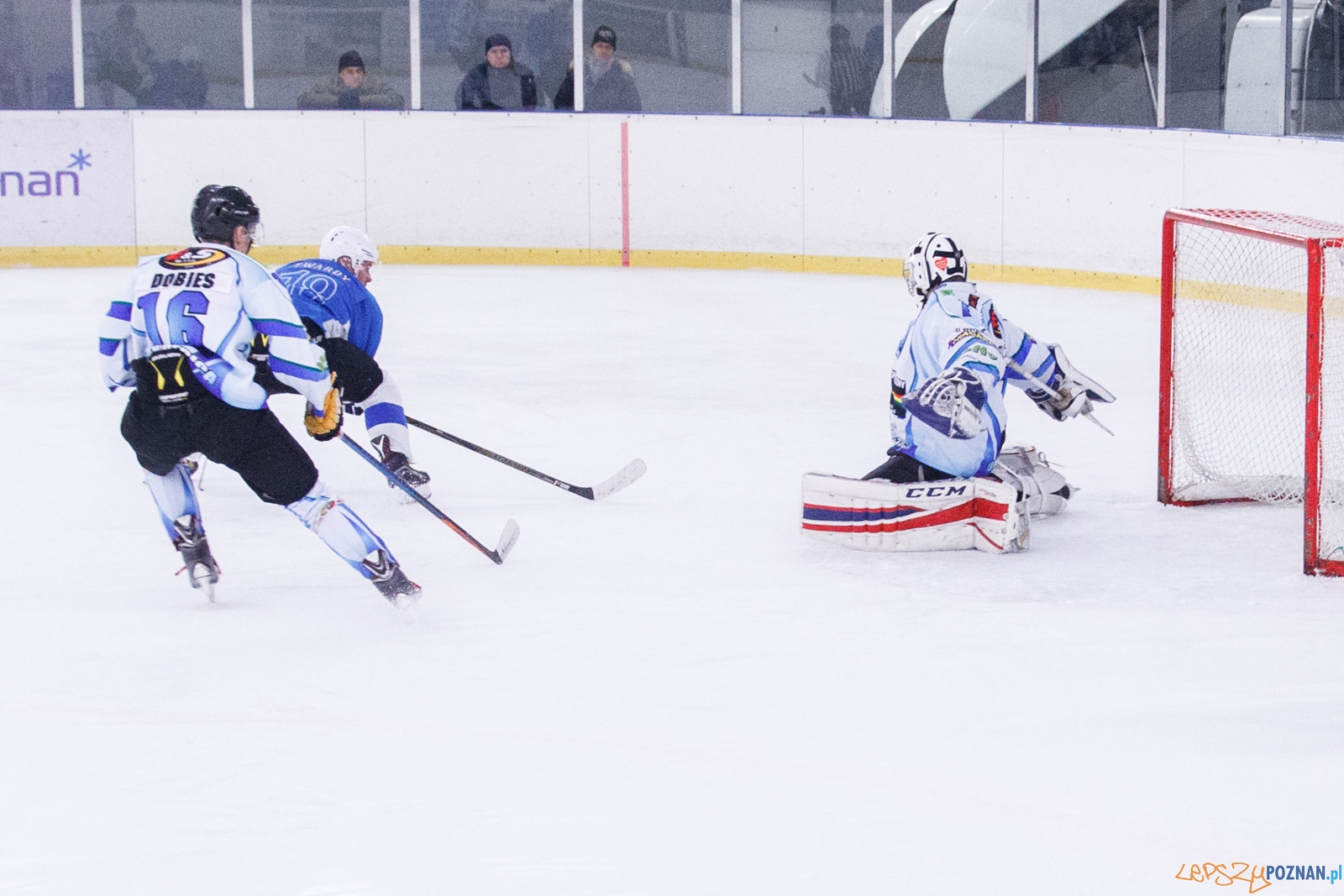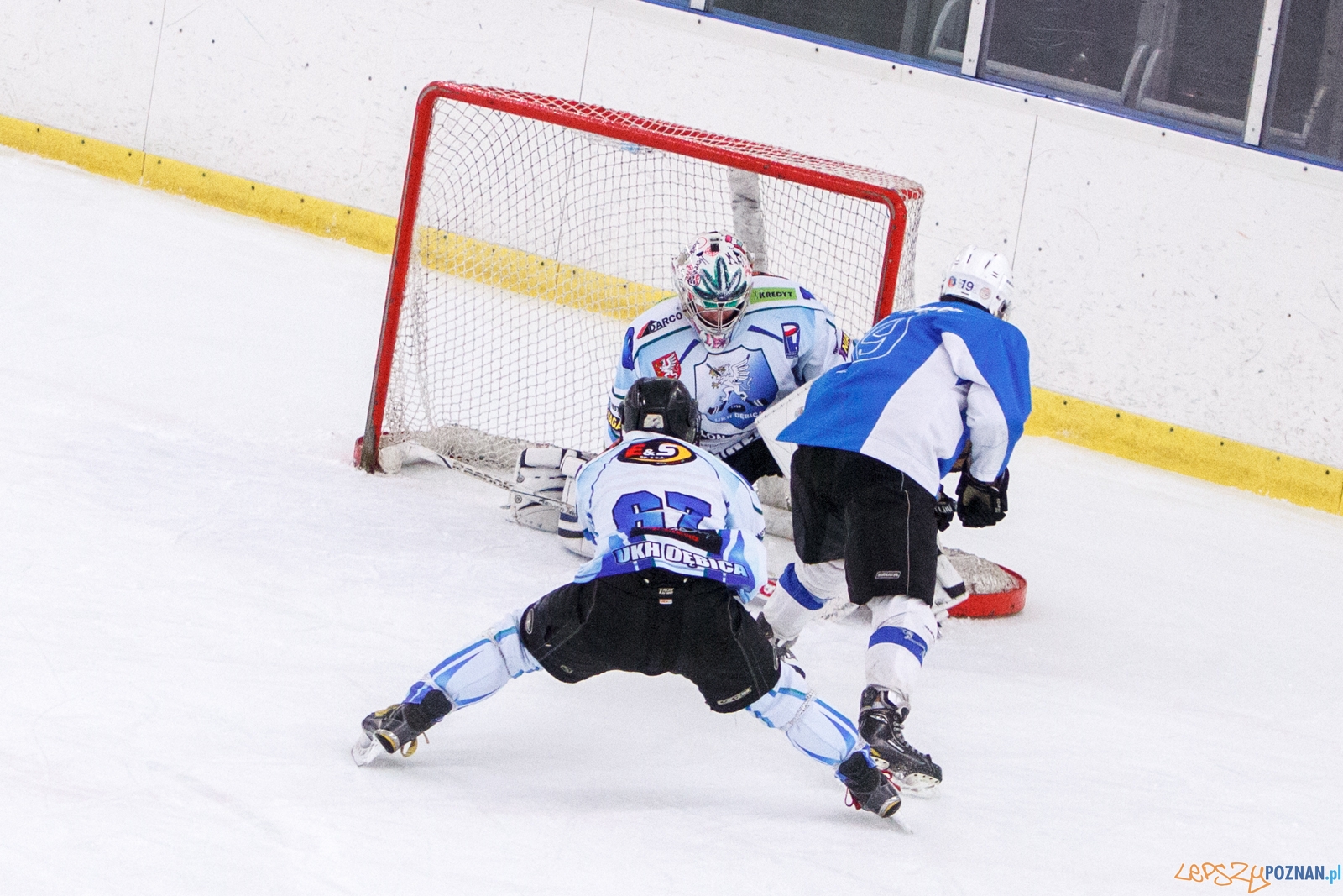 W pierwszym meczu 3 rundy pierwszej ligi hokeja na lodzie, zawodnicy Hokej Poznań pokonali przed swoją publicznością drużynę UKH Dębica 9:5. Spotkanie oglądało około 100 kibiców.