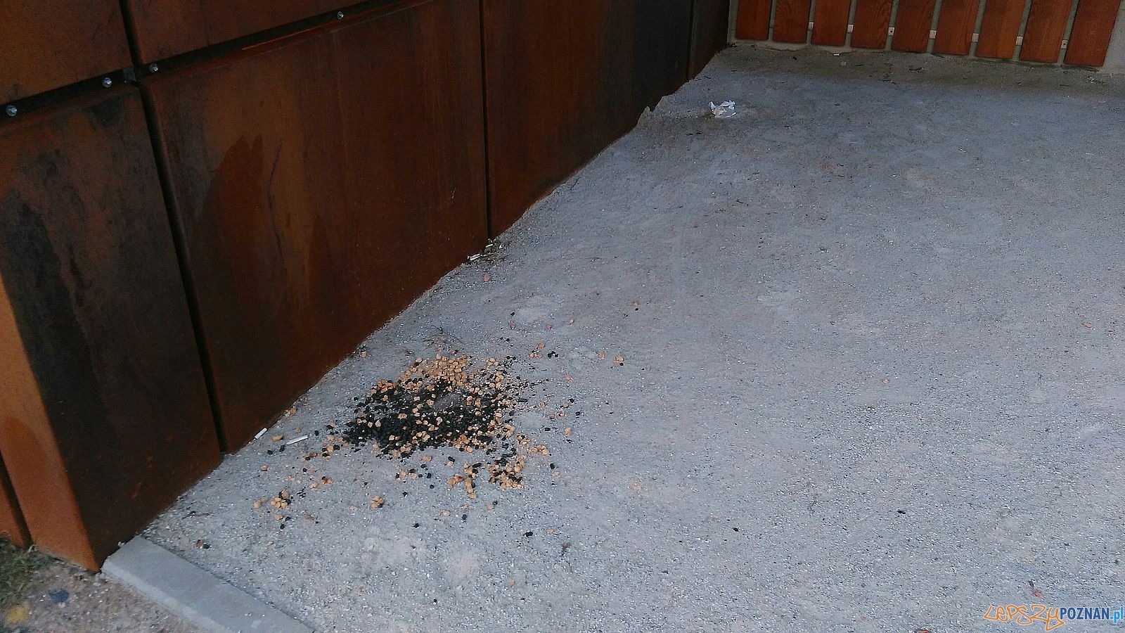 Pomimo zainstalowania monitoringu w nowym Parku w Starym Korycie Warty wandale zdołali pomalować wiatę, a ktoś wysypał w niej podejrzaną substancje przypominającą trutkę na szczury. Właścicieli psów przestrzegamy przed swobodnym wypuszczaniem swoich czworonogów.
