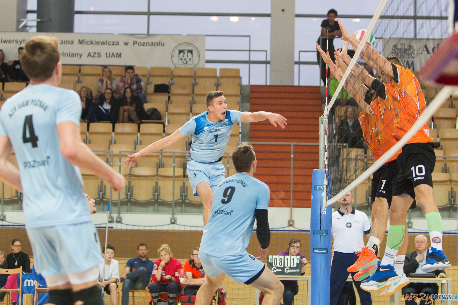 Akademicy od samego początku mieli problem z blokowaniem gości, to powodowało, że dośś szybko głogowianie potrafili wypracować bezpieczną przewagę i utrzymywać ją do samego końca spotkania. W pewnym momencie seta poznaniacy dostawali paraliżu, i nikt nie przeszkadzał Chrobremu w zdobywaniu kolejnych punktów. W trzecim secie poznaniacy próbowali zdobyć choć jednego seta, ale i ta sztuka nie udała się.
