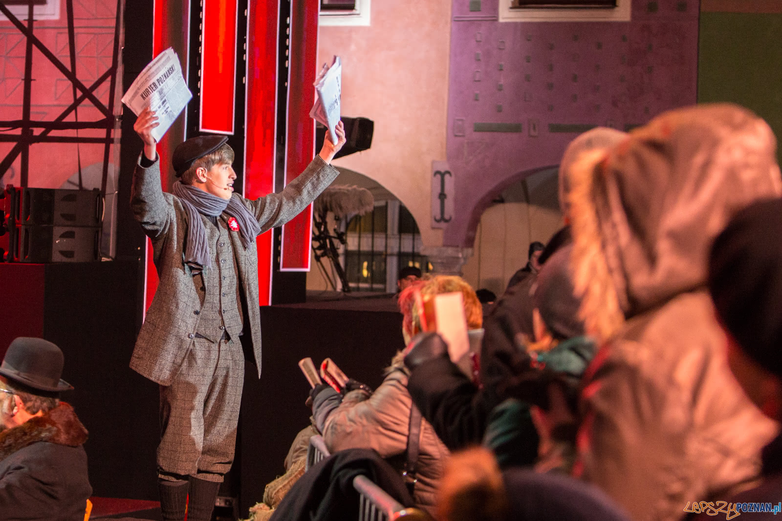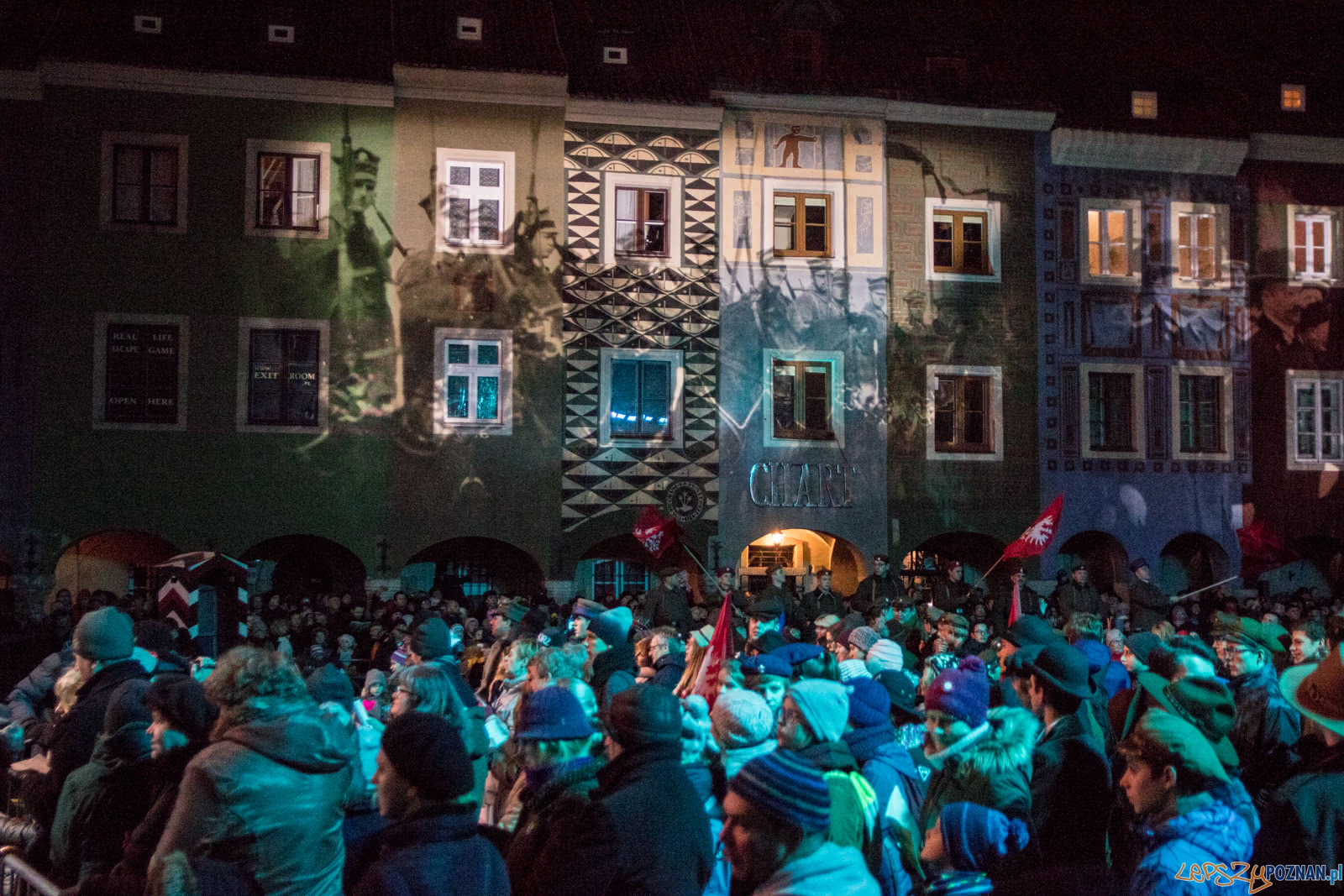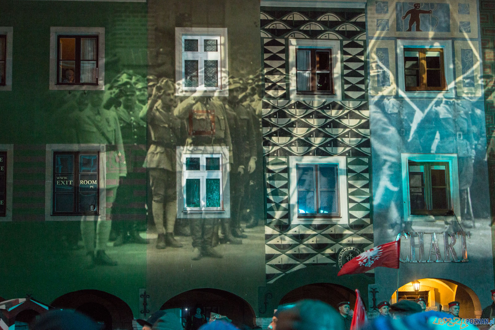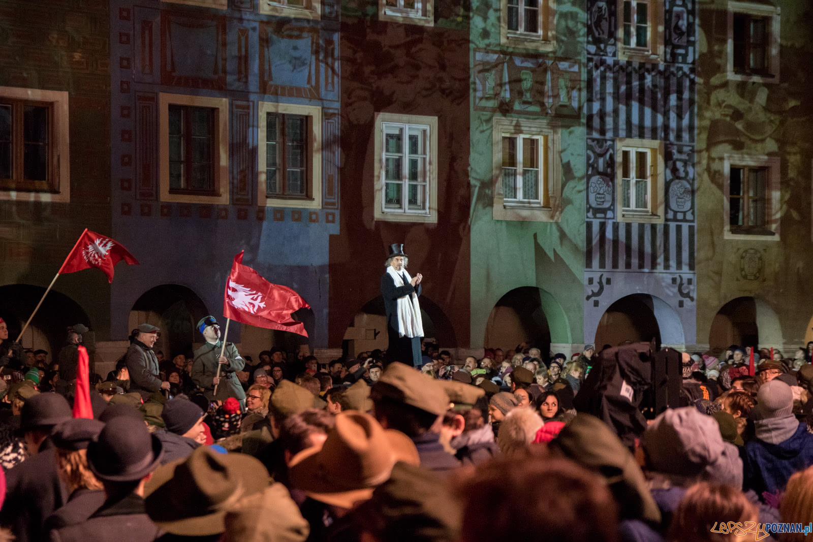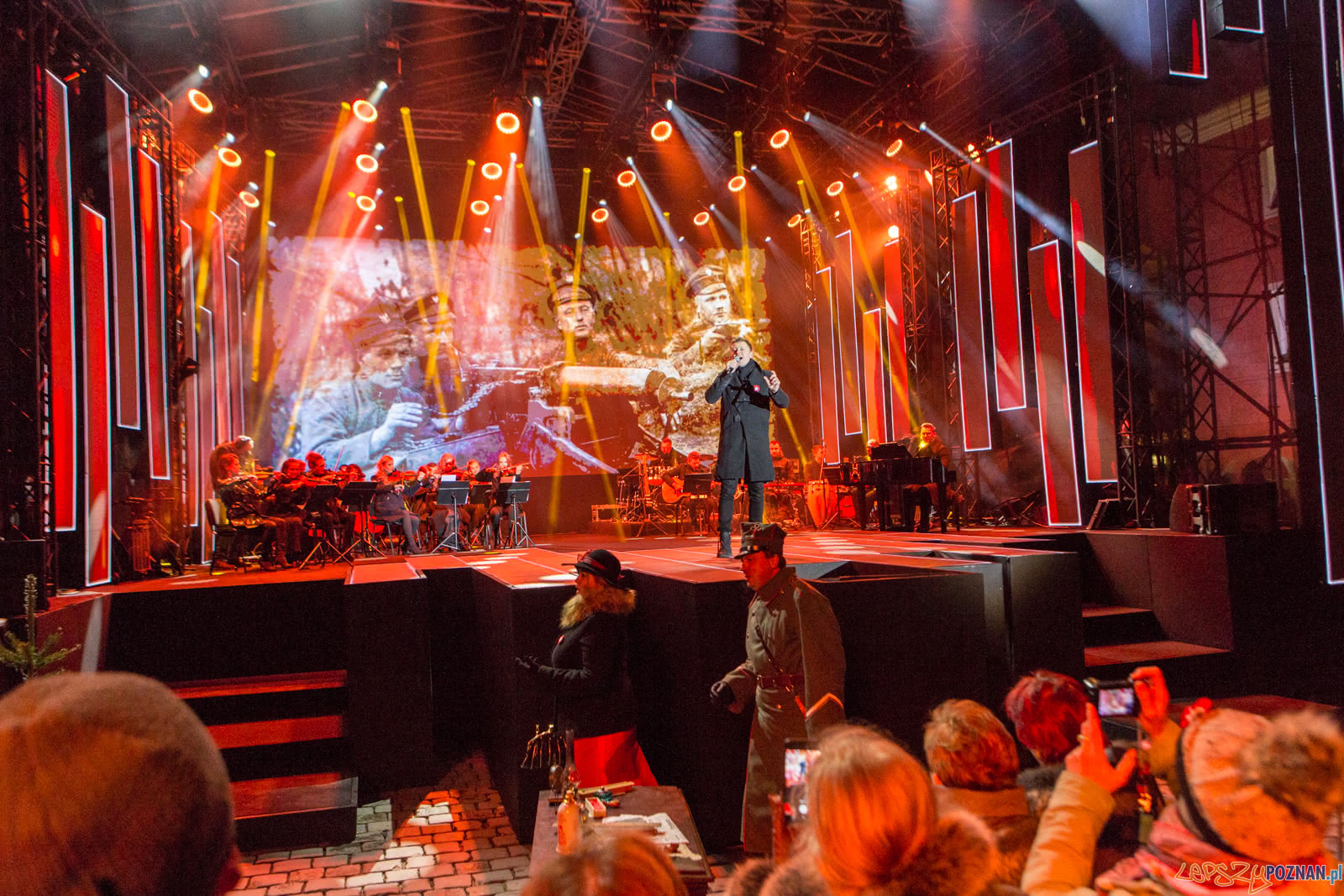 W trakcie widowiska na telebimach odtwarzane były przekazy historycznych wydarzeń, cytaty ze wspomnień powstańców, kopie rozkazów oraz wiele materiałów archiwalnych, które przyczynią się do aktywnego odkrywania i utrwalania historii kluczowej dla naszej tożsamości. W scenerii architektonicznej Starego Rynku, wśród krużganków Ratusza i arkad domków budniczych, pojawiło się też blisko 1000 harcerzy, a także ułani i grupy rekonstrukcyjne.