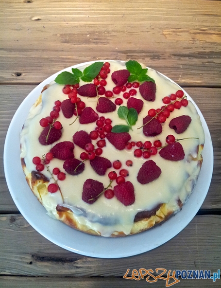 Czas zbierać się do teatru, ale jakoś ciężko mi stąd wyjść. Zza lady z ciastami uśmiecha się do mnie sernik z malinami, gruszkami i białą czekoladą (12 zł). Pewne jest to, że ciasto ma swojego autora i smakuje wyjątkowo, inaczej niż znane mi smaki z innych kawiarni.