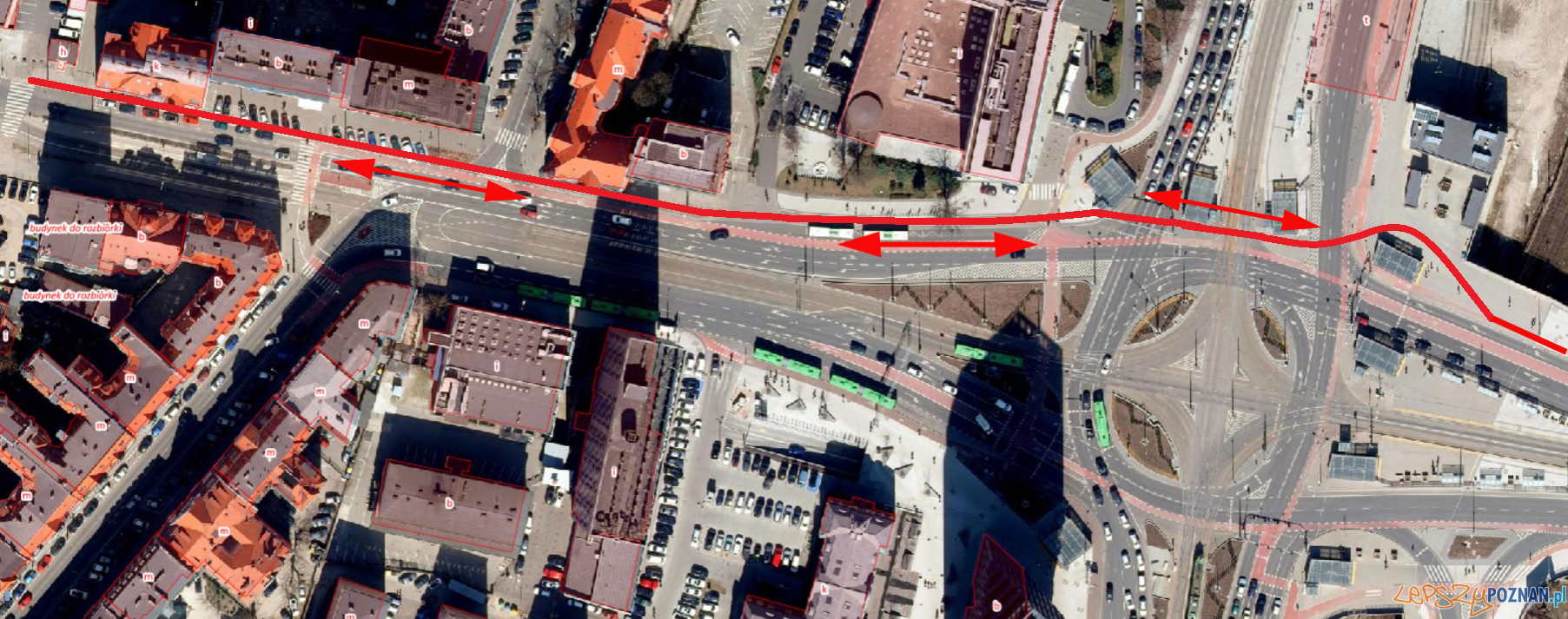 Lewy skrajny pas będzie przeznaczony do skrętu w lewo, dwa kolejne do jazdy na wprost, a prawy dla jadących w stronę ul. Św. Marcin. Ma to na celu ograniczenie wjazdu aut w stronę centrum. Nie będzie wówczas dochodziło do blokowania jednego z pasów ruchu, którym obecnie można jechać w kierunku północnym.