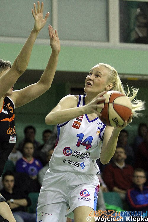 Poznań City Center AZS zagrał koszykówkę bardzo zespołową – pięć akademiczek zdobyło ponad 10 punktów, rozkładając ciężar gry na kilka zawodniczek. Wspaniałe zawody zagrała Magdalena Koperwas, która oprócz ciężkiego zadania w obronie – zmierzenia się z dużo wyższą Dorotą Sobczak, czy Leoną Jankowską, potrafiła skutecznie zagrać w obronie i zdobyć double/double: 16 punktów i 14 zbiórek. Wielokrotnie zbierając piłkę na własnej tablicy wyprowadzała skuteczną kontrę, zbierając ogromne brawa od wypełnionej po brzegi “Chwiałki”. Najlepszym egzekutorem w sobotnim meczu okazała się zmienniczka – Elżbieta Giedrojć.
